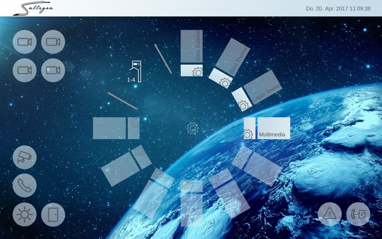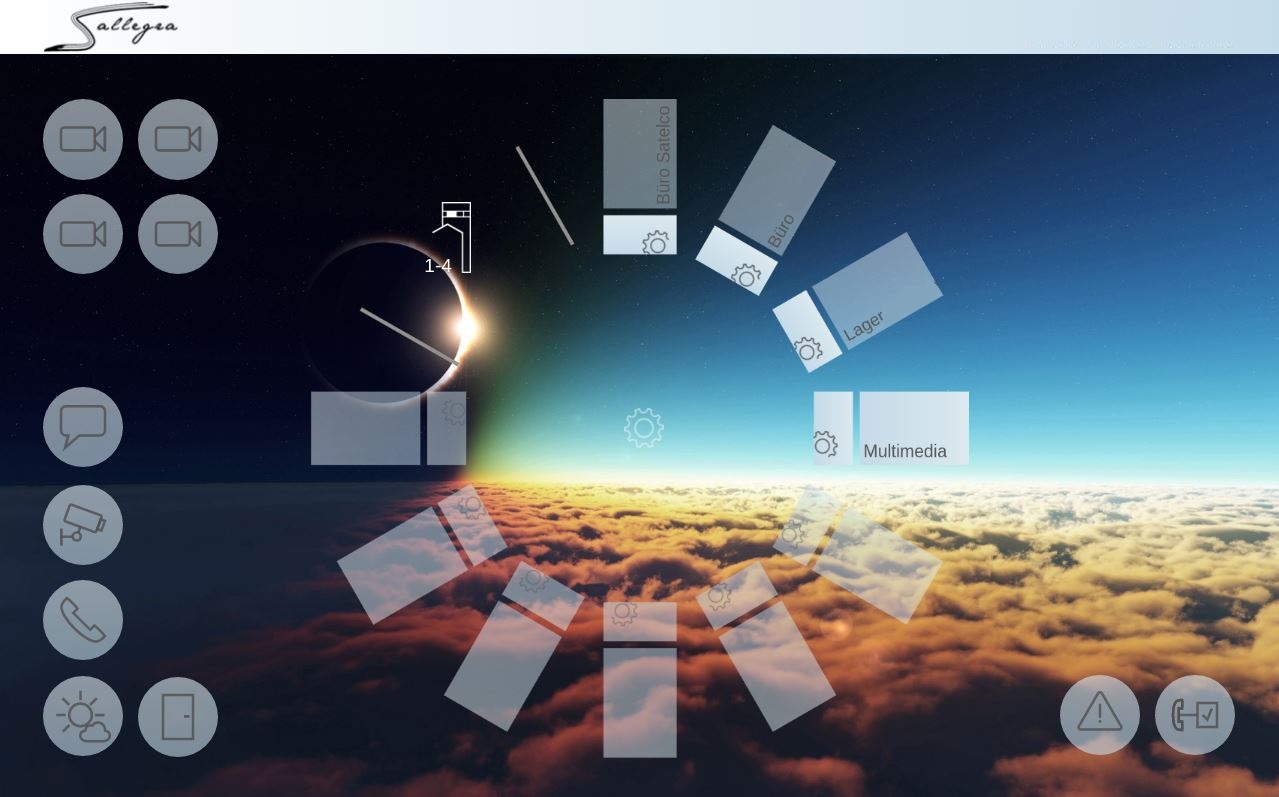 It is characterised by an easy installation, fully dynamic visualisation and intuitive operation. The built-in ambient sensor provides automatic regulation of the display lighting. No programming is required. Equipped with a few network parameters, the Sallegra® Multitouch Panel communicates with the Sallegra® building automation controller and independently establishes the corresponding visualisation. Therefore no maintenance is required. This is currently the only system where you can set all device parameters yourselves and also define scenarios without any software... simply through visualisation.