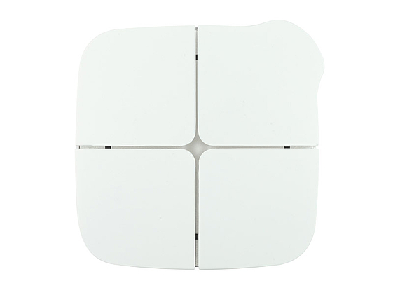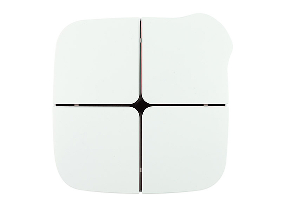Product has 4 (8) push-buttons which can be configured to manage lights, dimmers, shutters, etc.; and 4 inputs (where present) on the backside to interface free potential contacts (for example sensors, traditional buttons, etc.) It has 5 white LEDs in the front side, each LED freely configurable by ETS. The pressure of pads can be long or short and can command sequences. 3 versions have a temperature sensor included which can be configured as a room thermostat.