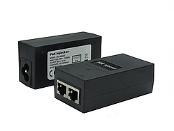 Beim Satelco PoE-Injektor handelt sich um ein Midspan mit einem Anschluss für den Innenbereich, der bis zu 24 W liefern kann.